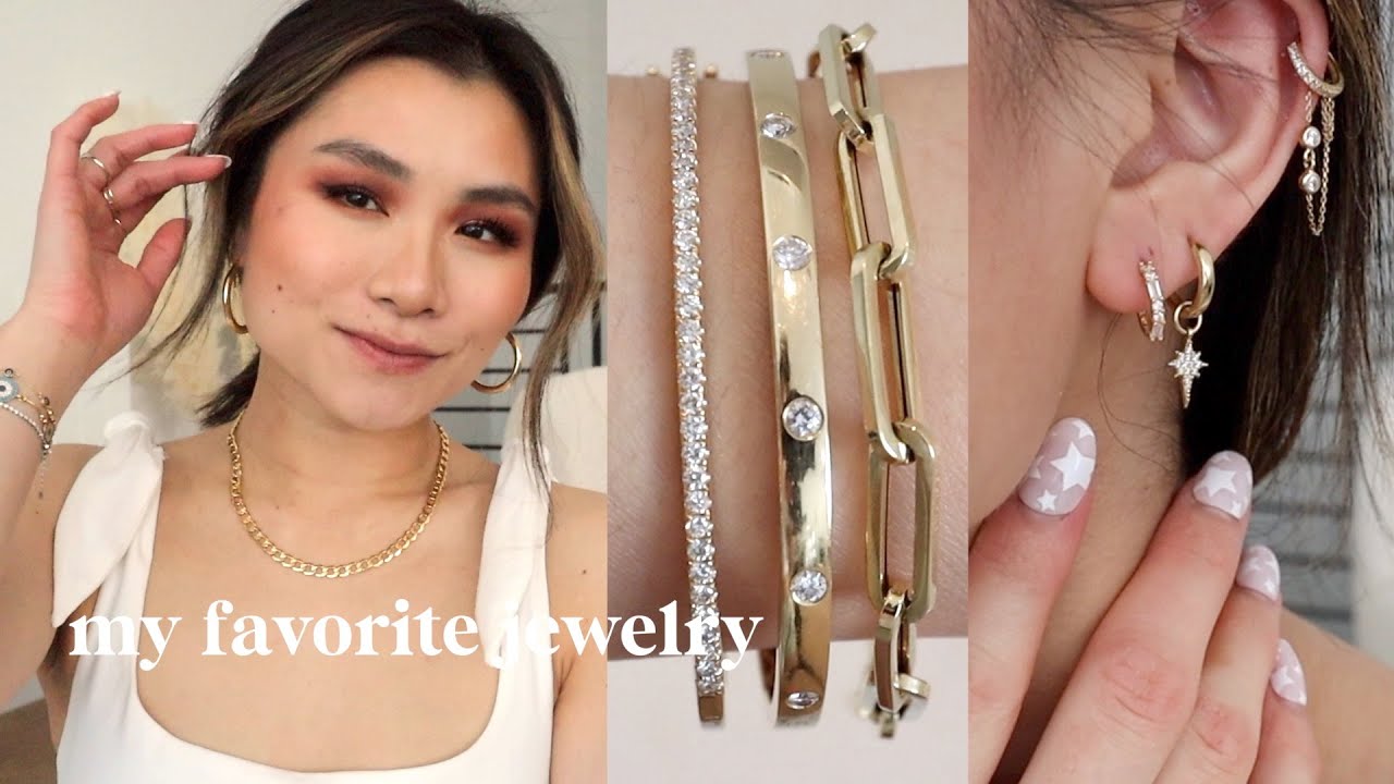 | ⊳⊳⊳ CLICK HERE FOR TIMESTAMPS & JEWELRY DEETS ⊲⊲⊲ ✨ MY JEWELRY GUIDE Blog Post (all the detailed info, bookmark for future reference!) ✨ EBY promo code: misslouie15 for 15% off https://shrsl.com/3abdk (expires 4/30/22) today i’m sharing my essential gold jewelry collection, from everyday minimal pieces to statement makers (rings, bracelets, necklaces & earrings!) ➫ Follow me on Instagram: http://bit.ly/2CH5Yzu ➫ My sizing 5’2” |