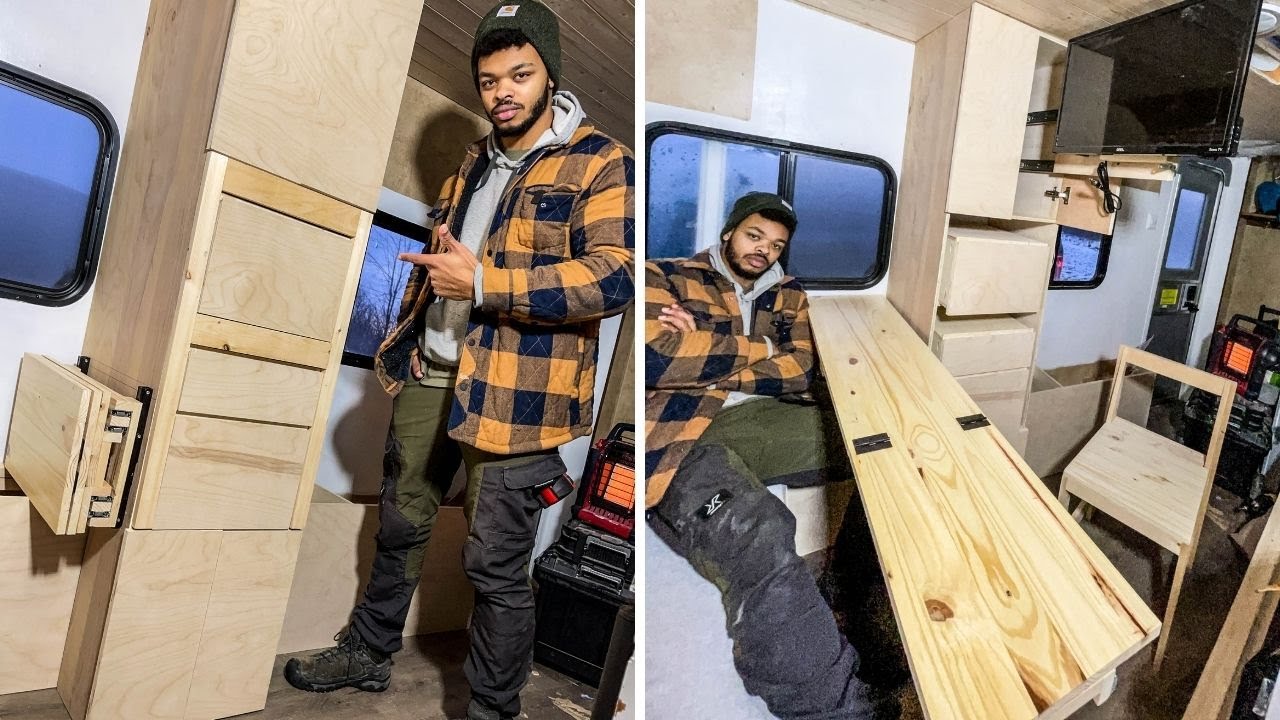 | The first 1,000 people to use this link will get a 1 month free trial of Skillshare: https://skl.sh/dualex12211 MY SECOND CHANNEL: 👉 https://bit.ly/30Dq39k 👈 I N S T A G R M: @dualex2x 👉 https://instagram.com/dualex2x/ 👈 AMAZON PRODUCT LIST👉 https://www.amazon.com/shop/dualex 👈 HELPFUL LINKS 👉 https://www.dualexbuilds.com/product-links 👈 FREE BUILD PLANS 👉 https://www.dualexbuilds.com/ 👈 C L I C K T O S U B S C R I B E: http://bit.ly/2fWl1tU ▬▬▬▬▬VIDEO CONTENTS▬▬▬▬▬▬ 0:00 - Intro 0:22 - Fixing problems from the last video 2:40 - Entryway cabinet build 5:25 - Skillshare 6:28 - Carcass continued 6:54 - Building the Hidden Chair 9:01 - Drawer boxes 11:46 - Hidden TV 17:08 - Folding Desk Leg 18:16 - Folding table 21:02 - Installing the Cabinet in the RV 22:08 - Final reveal Building a HIDDEN Chair, Desk, Entertainment System into this TINY Cabinet in my RV |