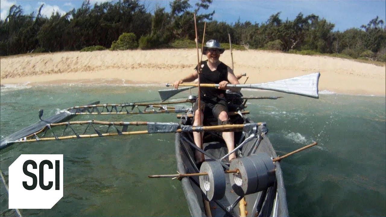 To escape a deserted island, Adam and Jamie build a boat completely out of duct tape and branches.