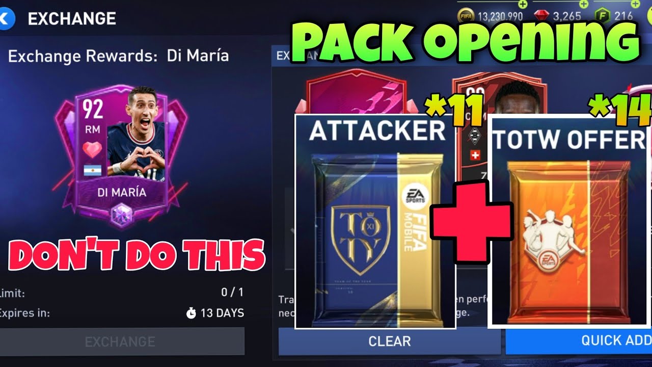| DON’T DO THIS!! DI MARIA EXCHANGE HEARTBREAKS FIFA MOBILE | TOTW AND TOTY PACK OPENING FIFA MOBILE 22 In this video we have covered totw and toty pack opening also we have covered how you can get di Maria from heartbreak exchange in fifa mobile 22 We are having partnership with RK REDDY discord server do check it out 🙌💜 RK REDDY discord link ⏬⏬ link: https://discord.gg/Fj7rPQRksN You can also join our discord server ⏬⏬ Link: https://discord.gg/dFRmYE8jg6 💜🙌 My Instagram I’d ⏬⏬ link :https://instagram.com/stolencharm_gaming?utm_medium=copy_link twitter I’d ⏬⏬ https://twitter.com/RaiHarshit2?t=6ksFkTVrnapiPRpy1bL4ow&s=09 Feel free to dm/message if you need help will try to reply asap You can join patel fifa server on discord 🔽 https://discord.gg/SrwKfnvDc8 #fifamobile22 #fifamobile |