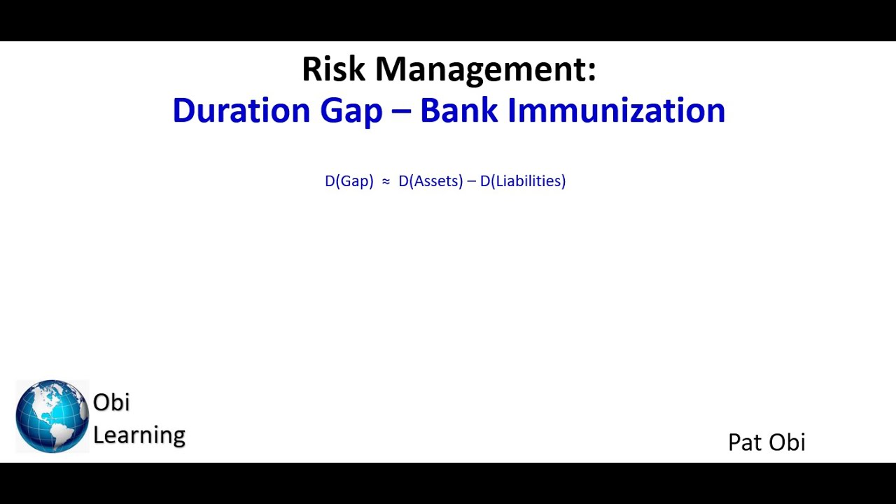 This video explains the concept of Duration Gap and shows how to calculate it. More importantly, it shows how to use D(Gap) to measure the impact of interest rate changes on the value of bank assets, liabilities and in particular, net worth.