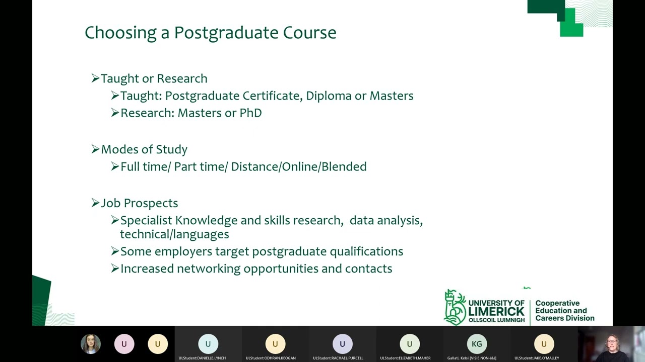 This event will be useful for anyone considering postgraduate study and provide information on factors to consider when deciding what type of postgraduate course to pursue, modes of study, funding options as well as give advice on how to prepare a personal statement for postgraduate study applications.