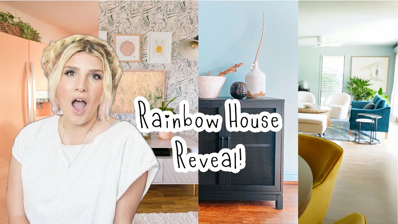 Today we are revealing the colorful rainbow interior design of our home. We’ve done so many DIYs in this house already and now we have a pink kitchen, green playroom, yellow hallway with gallery wall and beautiful ocean inspired all-blue living room! Lots of painting and budget-friendly choices led us to this final look. We shopped salvage and thrift stores and created a final design we’re so happy with, even if this is just to last us until we renovate! You’ll be very surprised with this epic before and after transformation!
