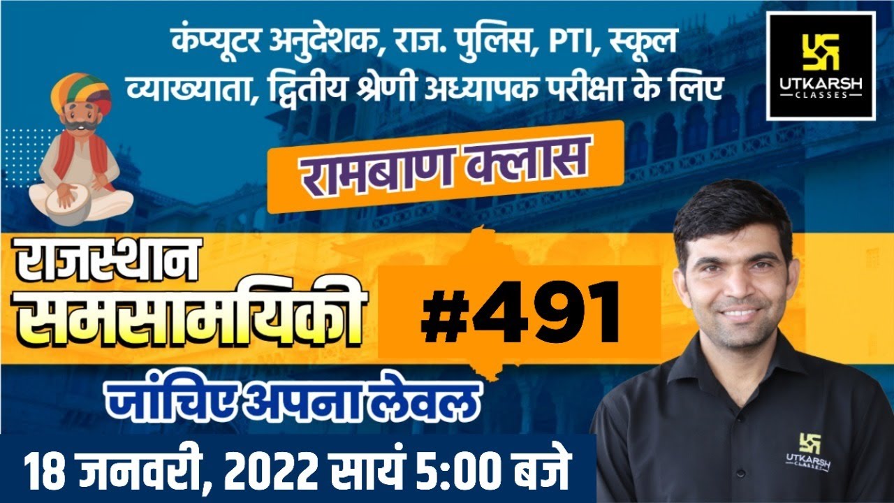 For All Exams - https://bit.ly/3kiUCX2 ▬▬▬▬▬▬▬▬▬▬▬▬▬▬▬ ✤ Subscribe to Our Other Channels:- ➤SSC Utkarsh - https://www.youtube.com/channel/UC_yuiK5r5fo4i2orrgvub5A ➤Utkarsh Nursing Classes - https://www.youtube.com/channel/UCiKEBdOKmGyluNl0-w4PzYA ➤ MP Utkarsh - https://www.youtube.com/channel/UC_qlX97sBer2iZEohRtt9Hw ➤ Bihar Utkarsh - https://www.youtube.com/channel/UCqxthGz_peGd2StQ4qcn8Ew ➤ Haryana Utkarsh - https://www.youtube.com/channel/UCTIvPYS4Oj9un-JoFXVyUqg ➤ Utkarsh Defence Academy -https://www.youtube.com/channel/UC3k9loYBP7YaReV2j6vduUA ➤ UP Utkarsh - https://www.youtube.com/channel/UCiEdUSA4iV73p3QvMfwDvgQ ➤ Utkarsh IAS-PCS - https://www.youtube.com/c/UTKARSHIASPCS ➤ Utkarsh Law Classes - https://www.youtube.com/channel/UC2MaP5BzVwisbL9mDXazOIw ➤ Utkarsh NEET-JEE Online Classes - https://www.youtube.com/channel/UCp1T3Oi6gaNy7cngeEfQ09g ➤ Utkarsh Commerce Classes - https://www.youtube.com/channel/UCnVqIqM6FsORHBXxwn9CrPA ➤ Utkarsh Online School - https://www.youtube.com/c/UtkarshOnlineSchool ➤ Nirmal Gehlot - https://www.youtube.com/channel/UClTLV9r7vxZGme4_F6_M2iw ▬▬▬▬▬▬▬▬▬▬▬▬▬▬▬ ✦ Join OUR Telegram CHANNELS:- ☞ SSC Utkarsh - https://t.me/SSCUtkarsh ☞ Utkarsh Nursing Classes - https://t.me/UtkarshNursingClasses ☞ Utkarsh Classes Jodhpur - https://t.me/utkarshclasses ☞ MP Utkarsh - https://t.me/MP_Utkarsh ☞ Haryana Utkarsh - https://t.me/HaryanaUtkarsh ☞ Bihar Utkarsh - https://t.me/BiharUtkarsh ☞ UP Utkarsh - https://t.me/UPUtkarsh ☞ Utkarsh Law Classes - https://t.me/utkarshlawclasses ☞ Utkarsh Defence Academy - https://t.me/UtkarshDefenceAcademy ☞ Utkarsh NEET-JEE Online Classes - https://t.me/neetjeeutkarsh ☞ Utkarsh Online School - https://t.me/UtkarshOnlineSchool ☞ UTKARSH IAS-PCS - https://t.me/utkarshiaspcs ☞ UTKARSH COMMERCE CLASSES - https://t.me/UtkarshCommerceClasses ☞ सर्वांगीण उत्कर्ष @ Utkarsh App - https://t.me/SarvangeenUtkarsh ▬▬▬▬▬▬▬▬▬▬▬▬▬▬▬ ⚝ Nirmal Sir Social Media:- ✔Facebook - https://bit.ly/2TbToAM ✔Twitter - https://bit.ly/2HpmycI ✔Instagram - https://bit.ly/2HiI1EL ▬▬▬▬▬▬▬▬▬▬▬▬▬▬▬ ⚝ Stay Updated Via Social Media:- ✔ Facebook - https://bit.ly/3gmBEfK ✔ Twitter - https://bit.ly/2JkjU9G ✔ Instagram - https://bit.ly/3gjpCE3 ▬▬▬▬▬▬▬▬▬▬▬▬▬▬▬▬ #RajasthanCurrentAffairsRevison #RajasthanCurrentAffairsClasses #TodayRajasthanCurrentAffairs #DailyCurrentAffairs #SubInspectorPreparation #CurrentAffairsToday #NarendraSir #VanrakshakVanpal #RajasthanPolice #REETExam #2ndGradeExam #PTIExam #ComputerAnudeshak #RajasthanCurrentAffairsToday #RajasthanCurrentAffairs2022 #RajasthanCurrentAffairsMarathon #RajasthanCurrentAffairsMCQ #RajasthanCurrentAffairsInHindi #RajasthanCurrentNews #RajasthanSamsamyiki #RajasthanCurrentAffairsImportantQuestions #RajasthanCurrentNews |