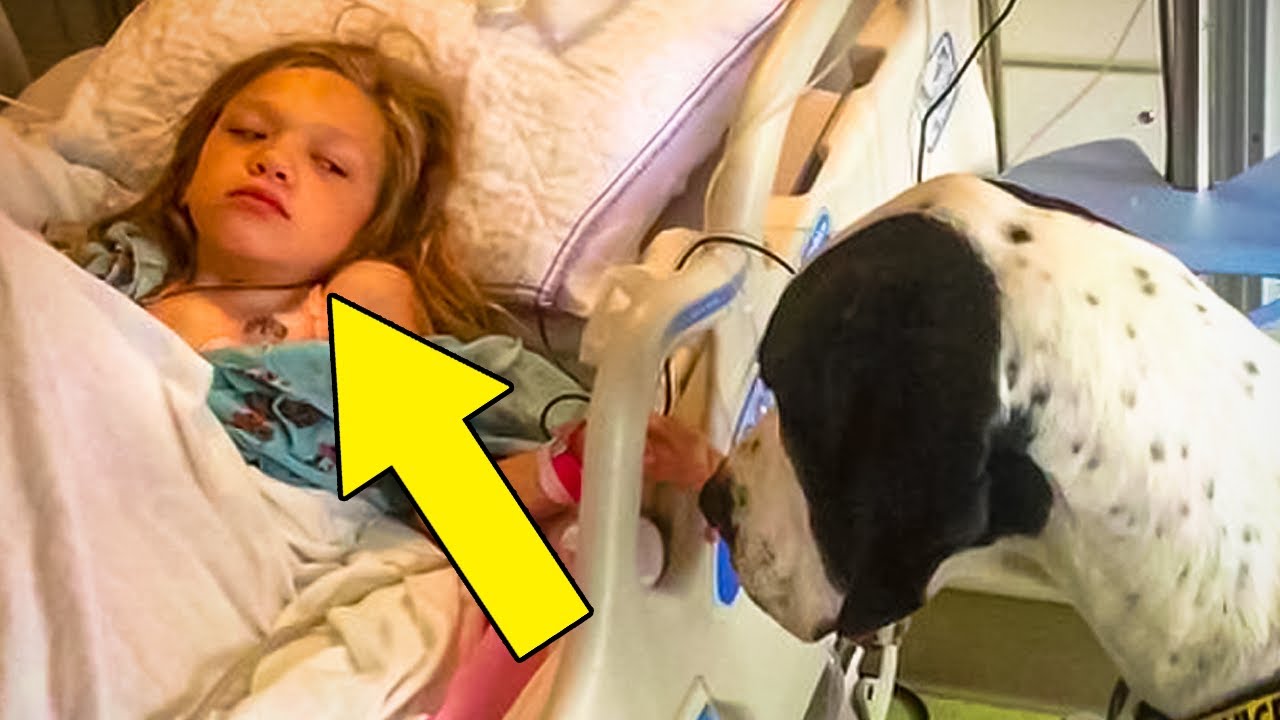 This Giant Dog Approaches A Little Girl’s Sickbed, And The Straps On His Back Reveal Why He’s There