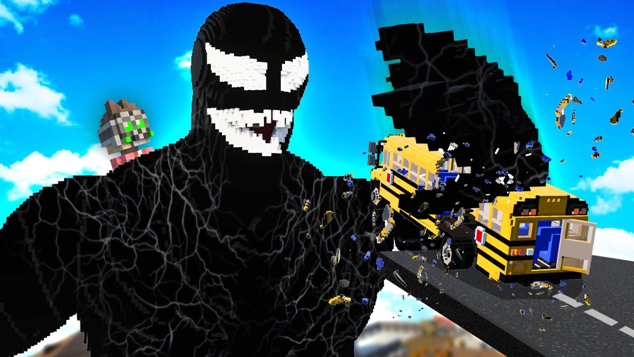 Today @Fudgy and I drive a bunch of cars into Venom. I’ve made Venom HUGE and with physics and he’s able to, defend himself.